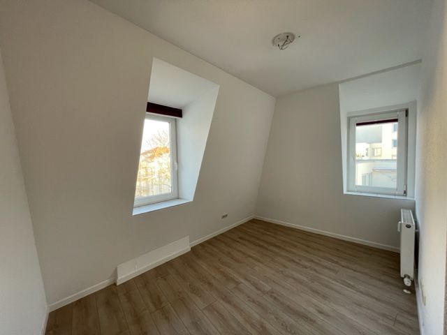 Über eine Holztreppe gelangt man ins Dachgeschoss, das zwei weitere Zimmer bietet. Eines davon kann ideal als Schlafzimmer, das andere als Arbeitszimmer genutzt werden.