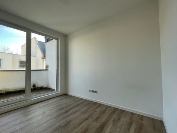 Auf der ersten Ebene der Wohnung befinden sich das Wohnzimmer mit Zugang zu einer großzügigen Dachterrasse, die Küche, ein Badezimmer sowie zwei Schlafzimmer, eines davon verfügt über einen kleinen Balkon. Ein separates Gäste-WC ist ebenfalls vorhanden.