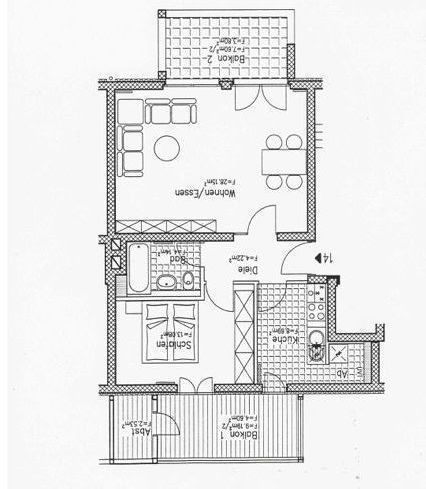 Den zweiten Balkon mit Blick ins Grüne betritt man von der Küche und vom Schlafzimmer aus.