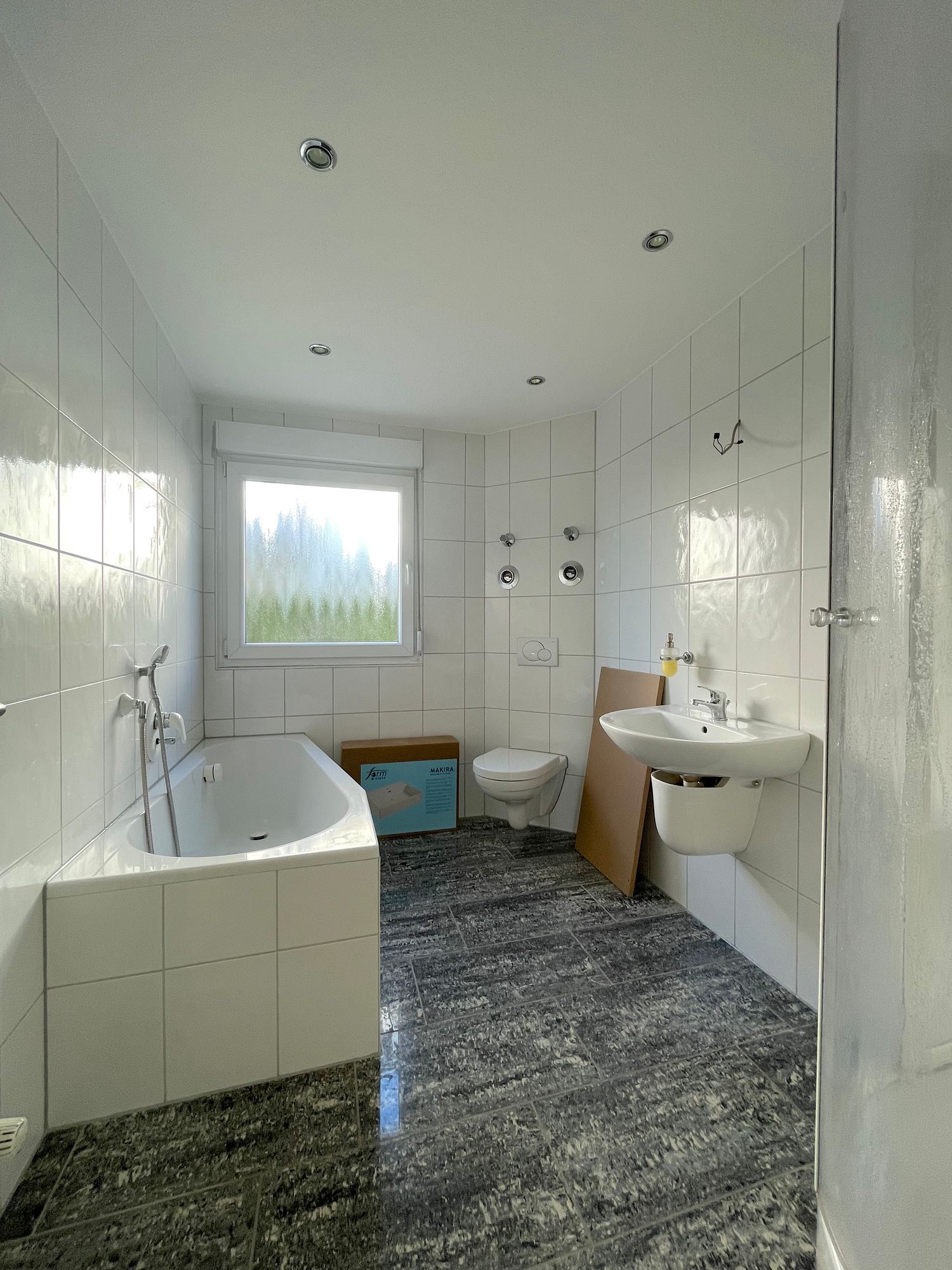 Das Tageslichtbad hat sowohl eine Badewanne, als auch eine Dusche.