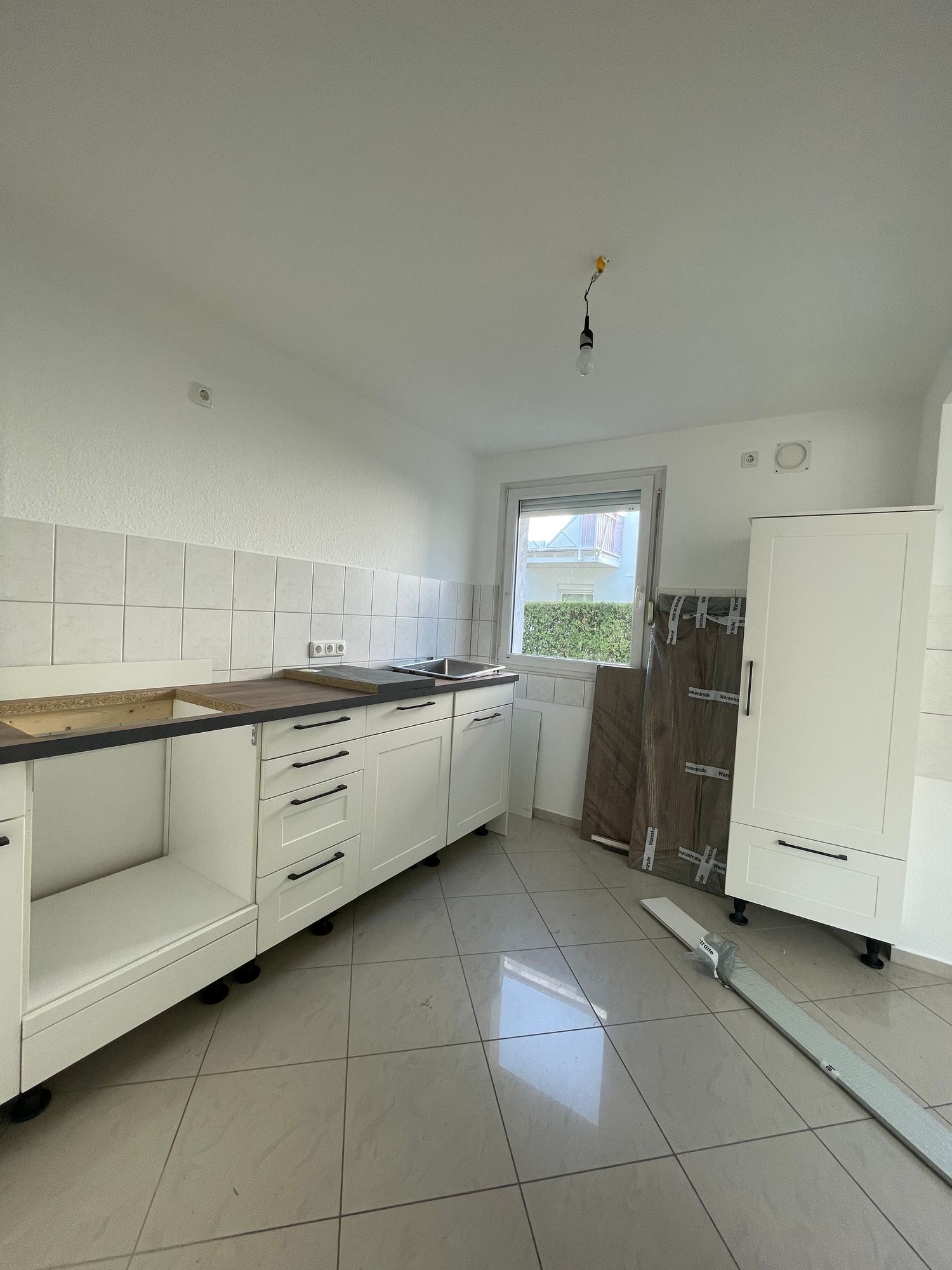 Die Wohnküche ist mit einer neuen, hellen Einbauküche ausgestattet und bietet noch reichlich Platz für eine Sitzecke.