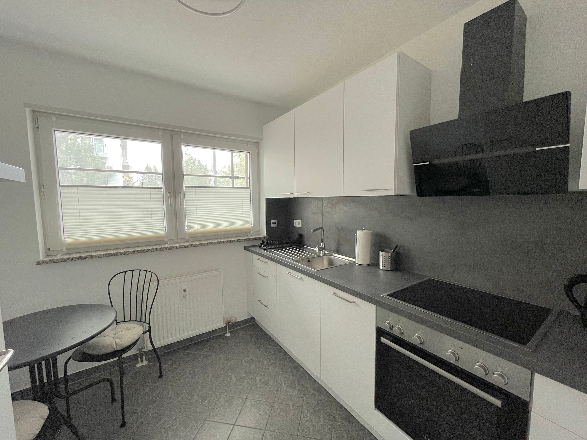 Die kleine Wohnküche bietet neben einer Einbauküche eine Essecke. Eine Grundausstattung an Küchenutensilien ist vorhanden.
