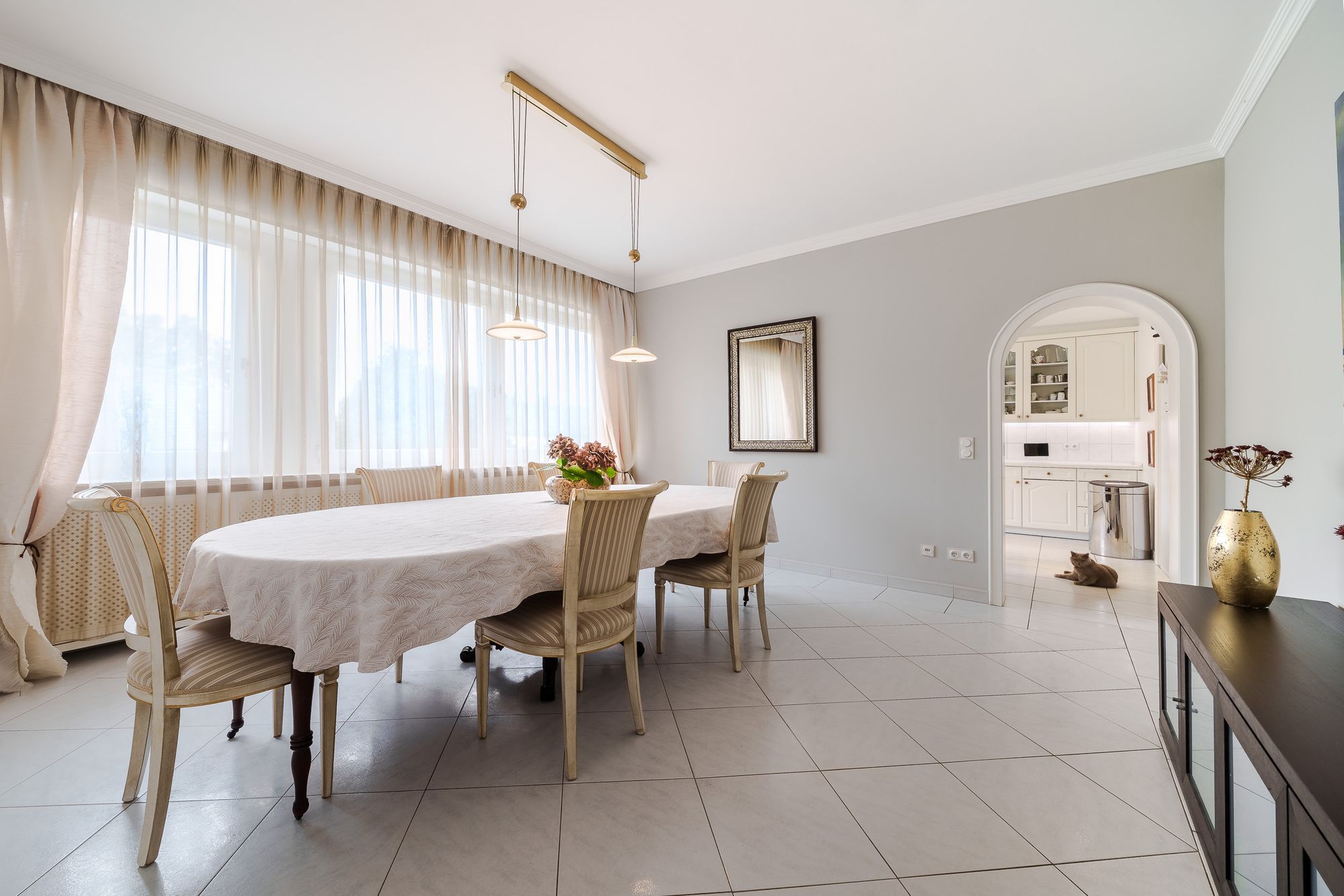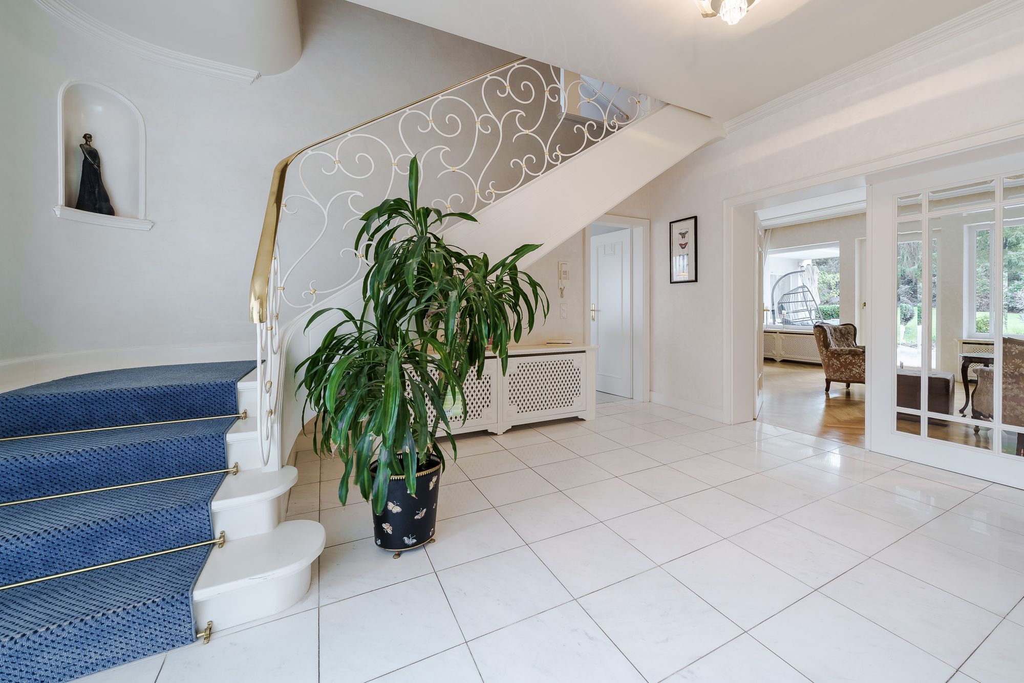 Diese exklusive und großzügige Villa wurde von den Eigentümern immer auf neuestem Stand gehalten, die letzte Renovierung war 2024. Das repräsentative Erdgeschoss teilt sich folgendermaßen auf: