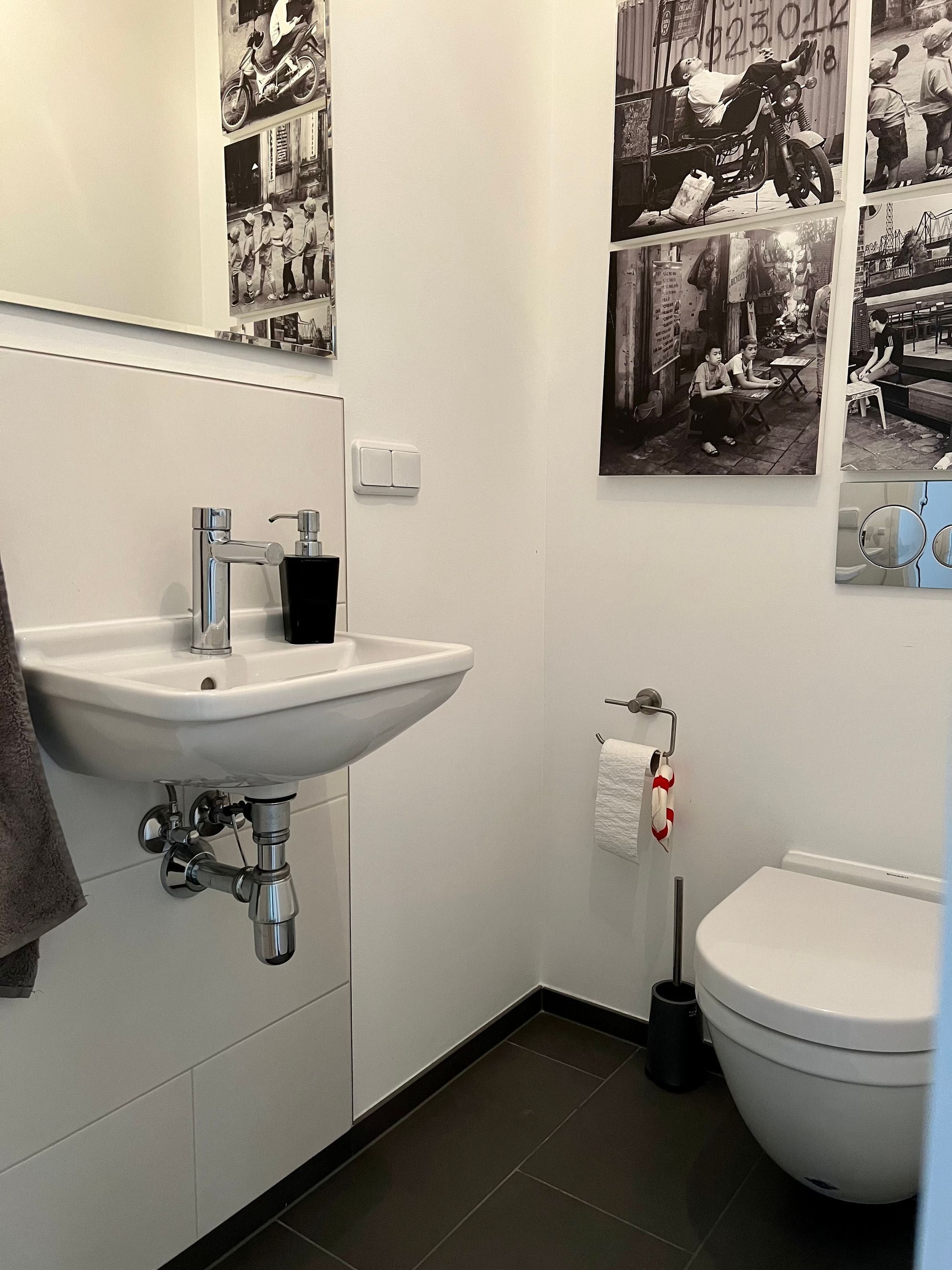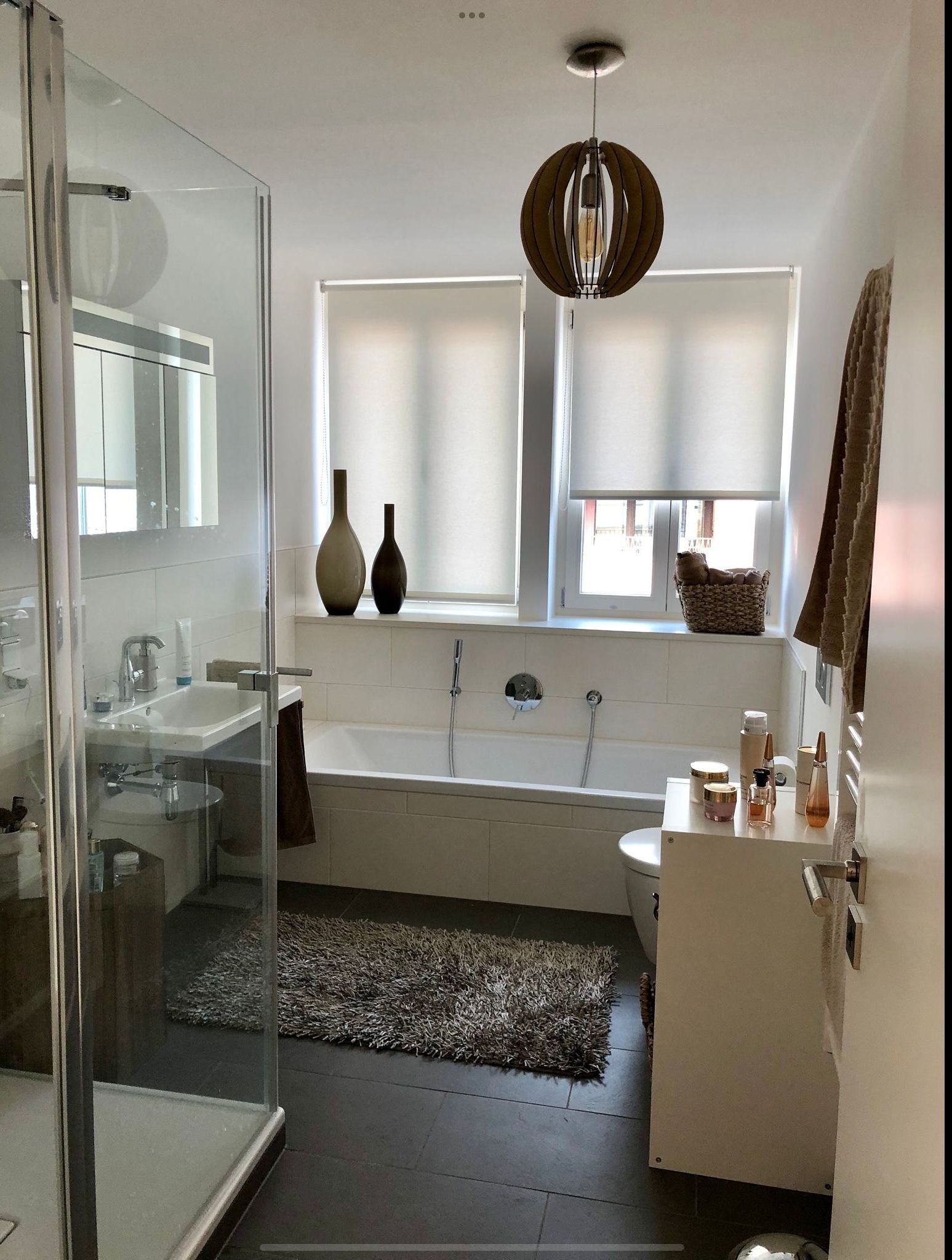 Ein weiteres, hochwertig ausgestattetes Tageslichtbad mit Badewanne und Dusche sowie ein separates Gäste-WC unterstreichen den gehobenen Wohnkomfort.