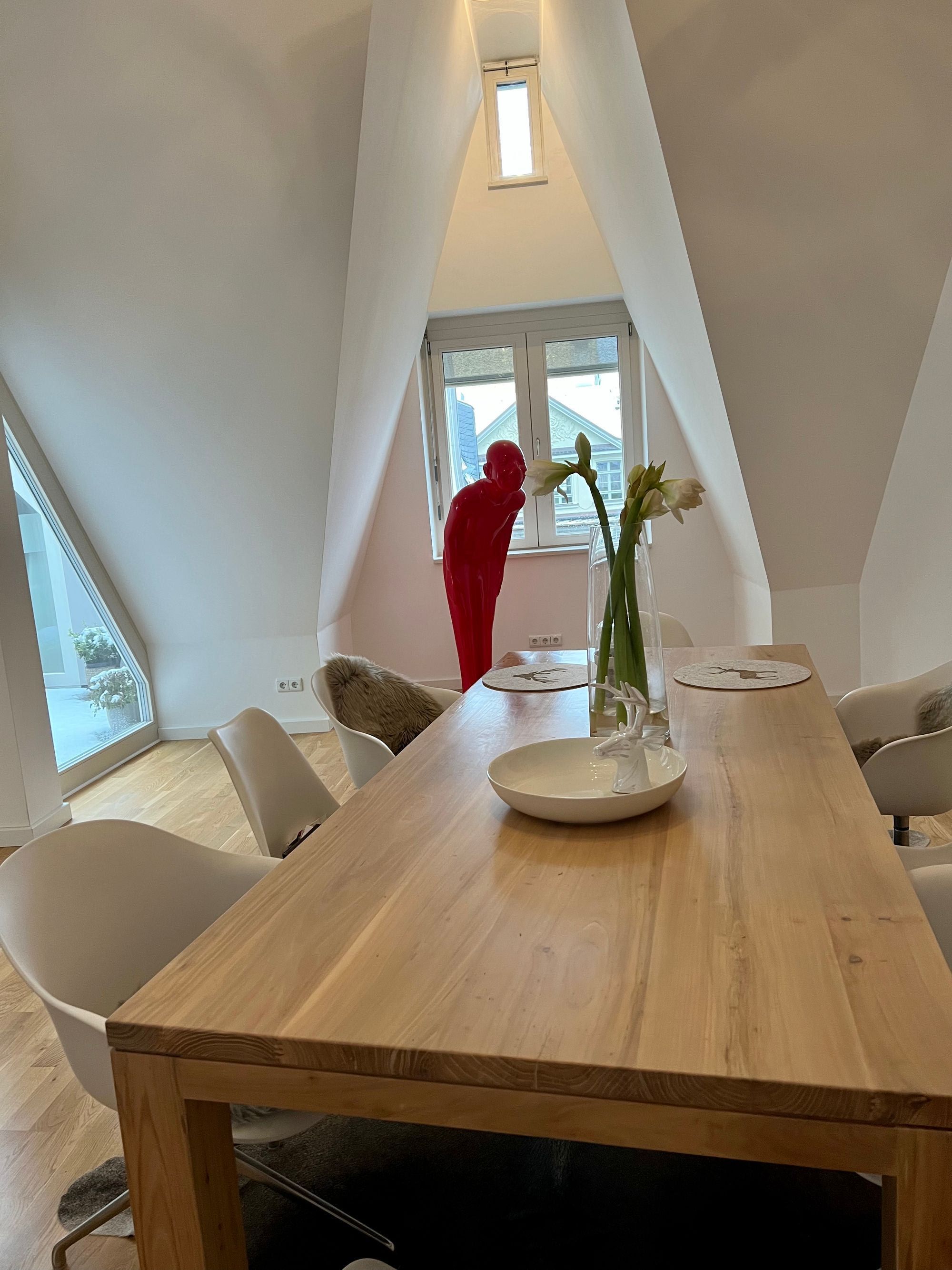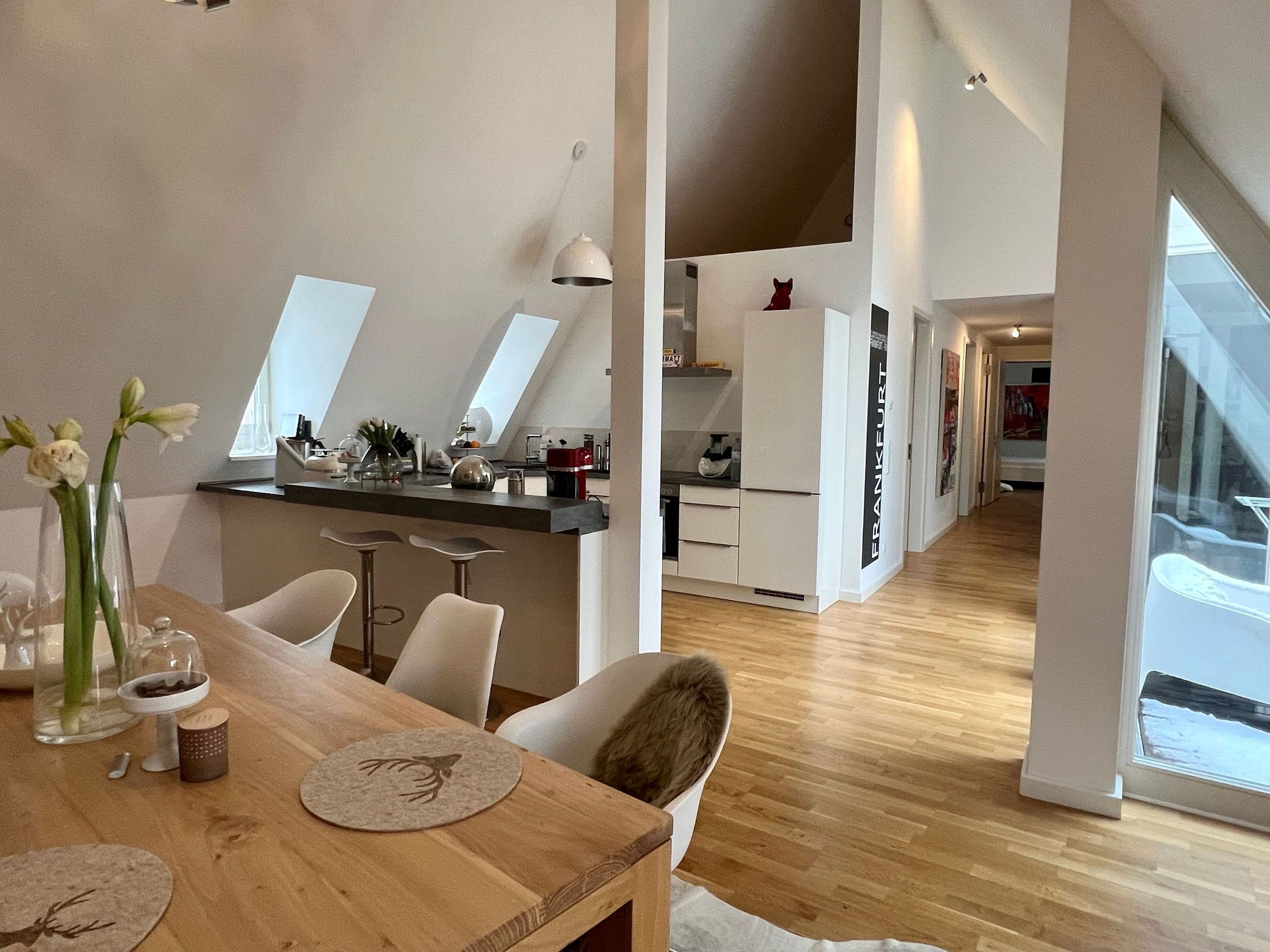 Diese außergewöhnliche 5-Zimmer-Dachgeschosswohnung befindet sich im 4. Obergeschoss eines repräsentativen Neubaus mit historisch inspirierter Fassade – eingebettet in die begehrte Frankfurter neue Altstadt. Ein Aufzug sorgt für komfortablen Zugang bis zur Wohnungsebene.