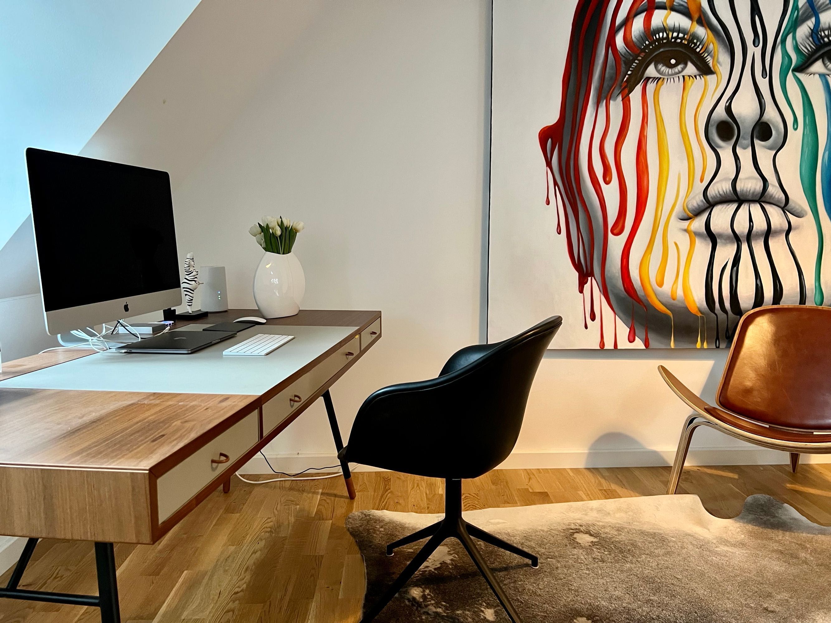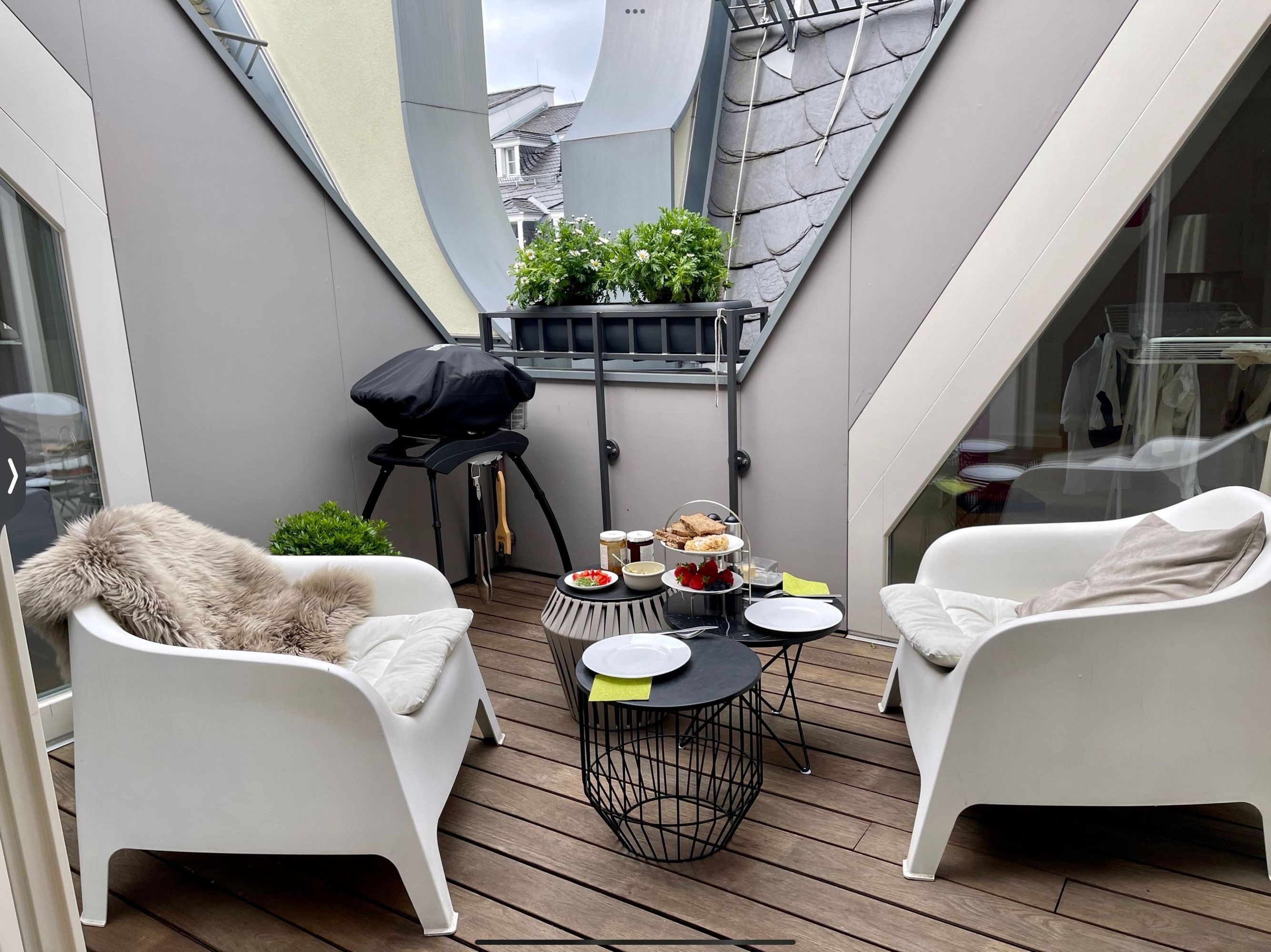 Ein besonderes Highlight ist die nahezu uneinsehbare Loggia, die einen privaten Rückzugsort im Freien bietet. Für ein angenehmes Raumklima sorgt zudem eine moderne Klimaanlage, die den Wohnkomfort insbesondere in den Sommermonaten deutlich erhöht.