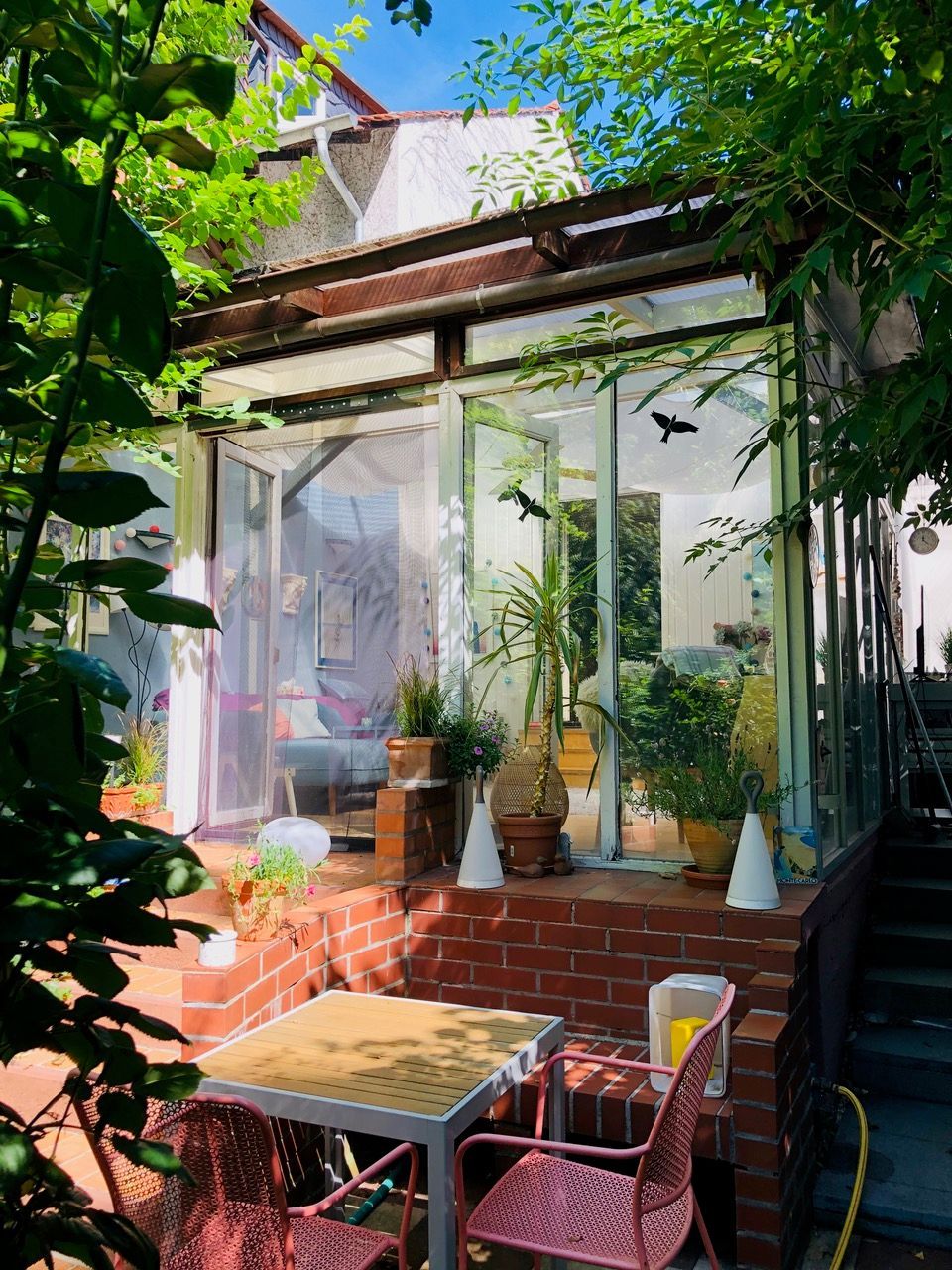 Der Außenbereich bietet durch den gewachsenen Bewuchs eine grüne und private Atmosphäre mit verschiedenen Bereichen zum Entspannen. Ob zum Gärtnern, Spielen oder einfach zum Verweilen im Freien – hier gibt es viel Platz für individuelle Ideen.