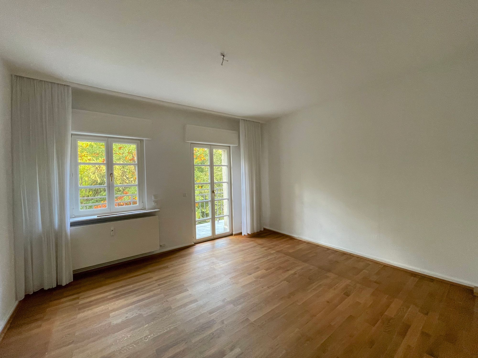 - großzügiger Wohn- Essbereich mit angrenzendem Balkon und Blick ins Grüne
