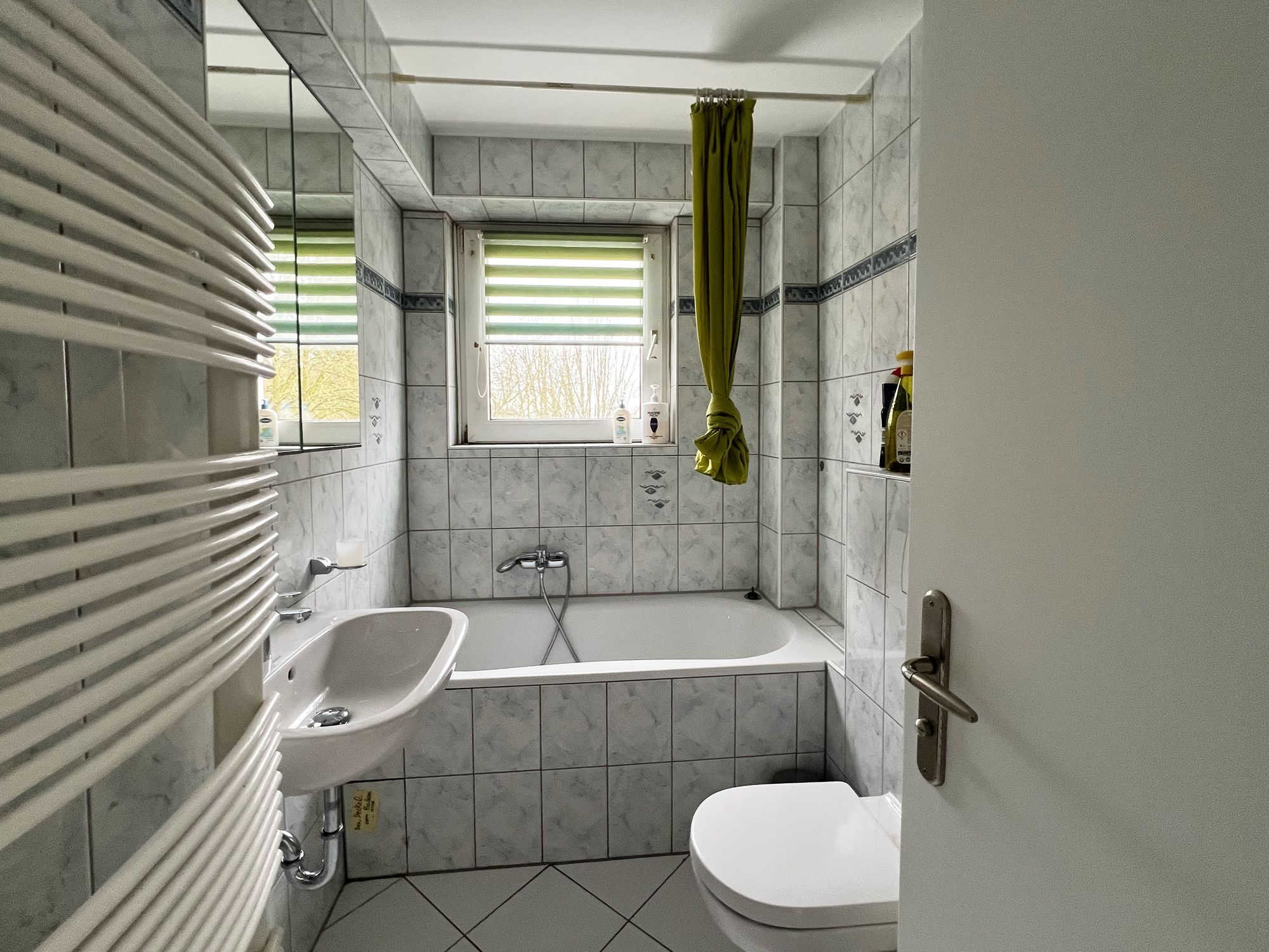 Das Tageslichtbad ist gefliest und mit Badewanne, Waschbecken, WC sowie Handtuchheizkörper ausgestattet.