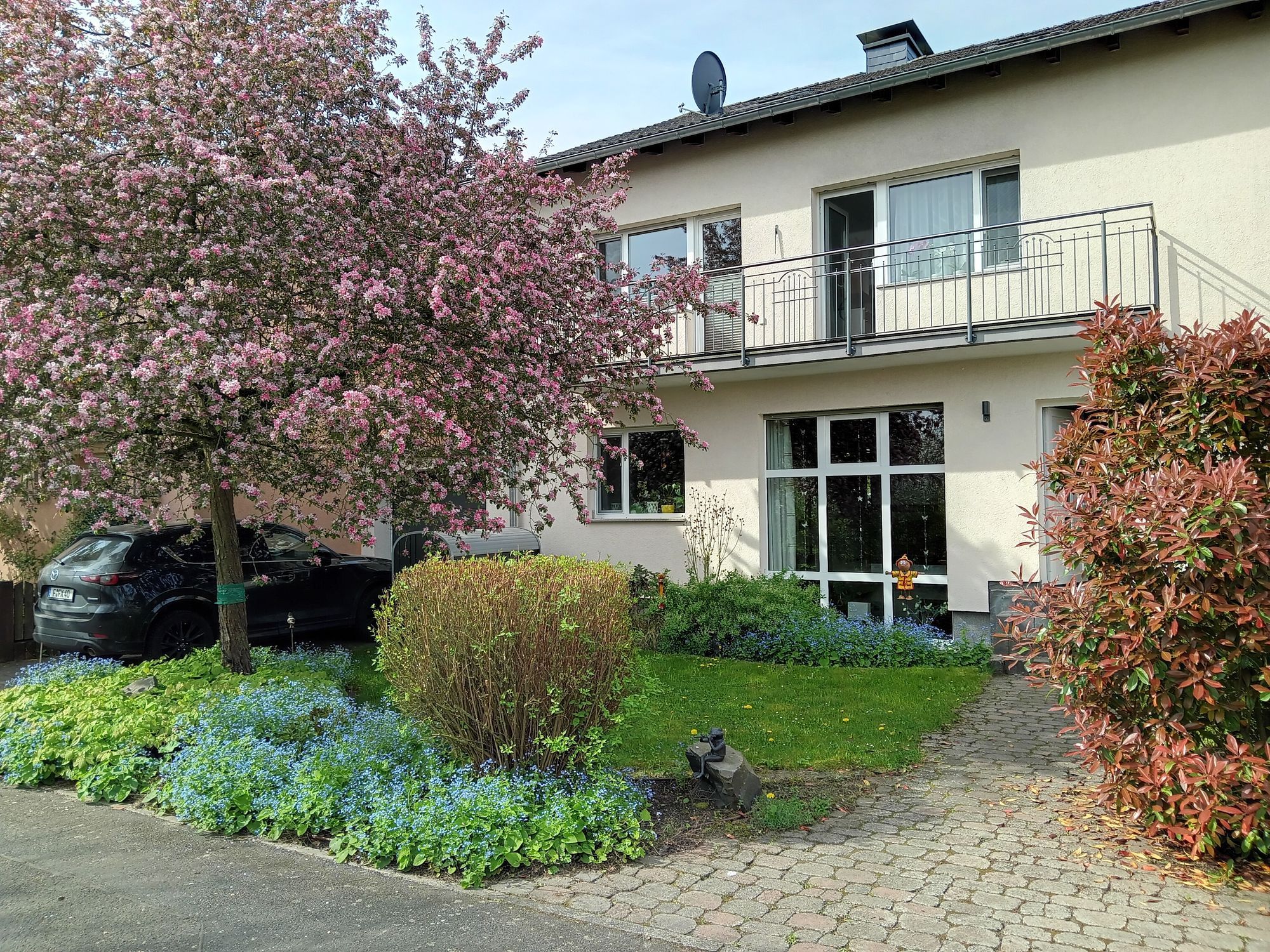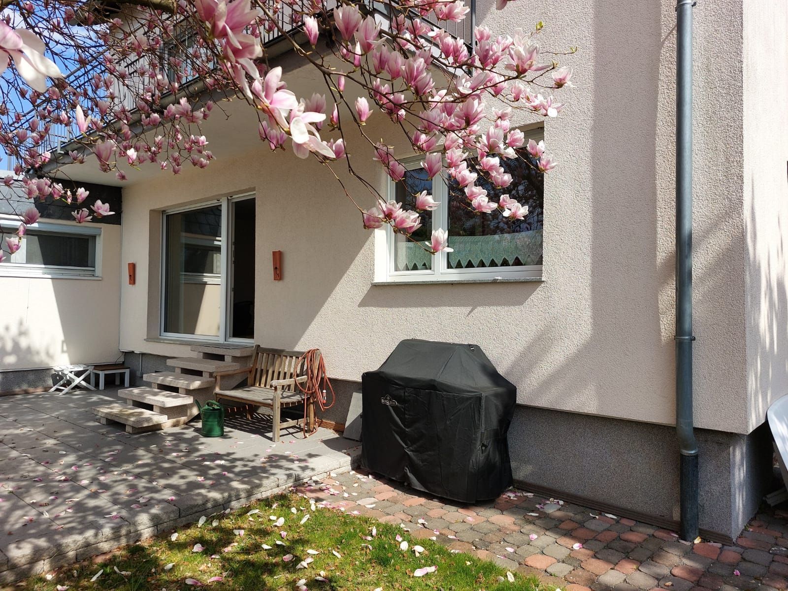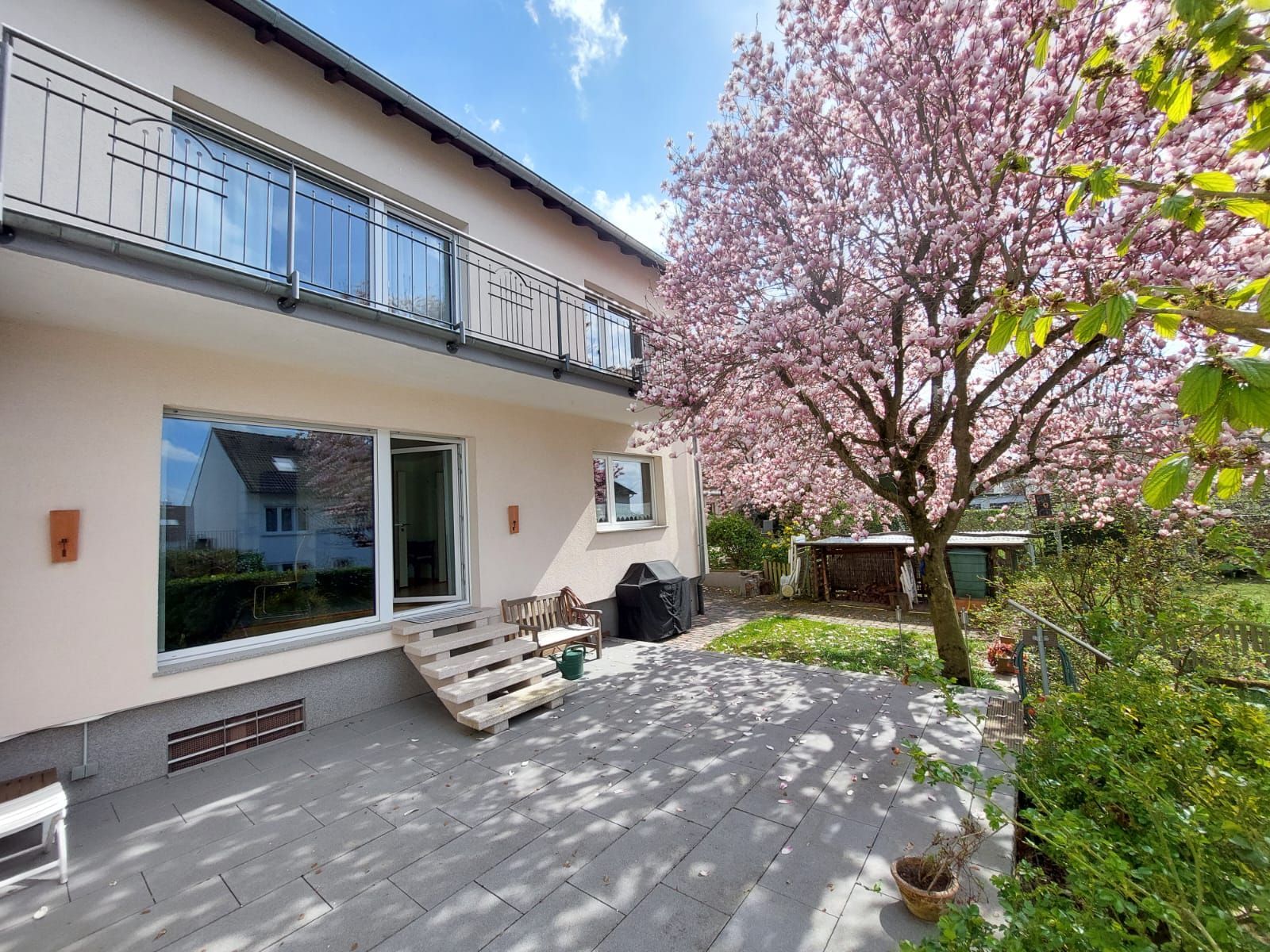 Dieses gepflegte und vielseitig nutzbare Objekt befindet sich am Rande von Nieder-Erlenbach, am Ende einer ruhigen Sackgasse direkt am Feldrand mit Blick auf Apfelbäume. Die Süd-West-Ausrichtung des Hauses zum Garten sorgt für eine helle und freundliche Atmosphäre – sowohl im Innenbereich als auch auf Balkon und Terrasse.