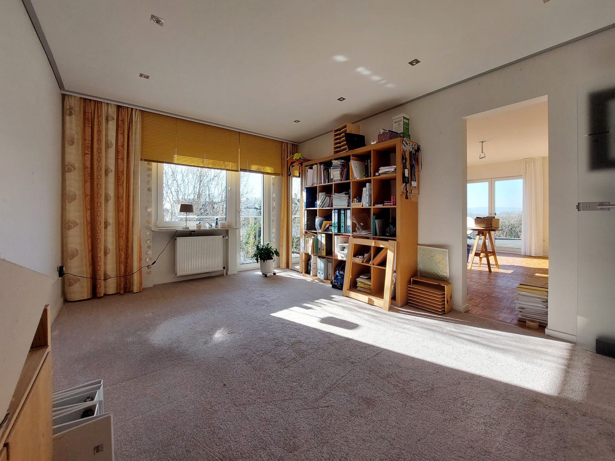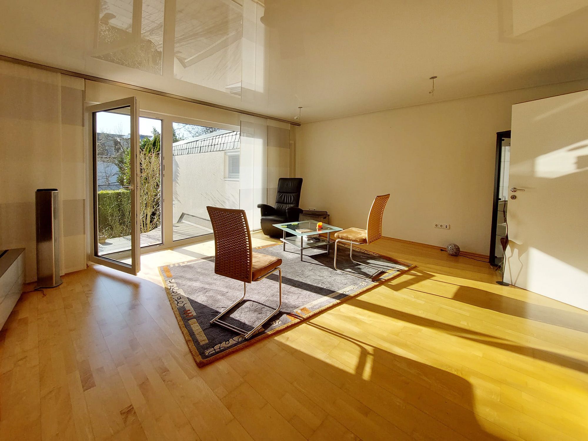 Großer, heller Raum mit Zugang zu Terrasse und Garten, geräumige Küche (inkl. Einbauküche) mit Platz für einen Essbereich, ein weiterer Raum (z. B. Büro-, Besprechungs- oder Behandlungsraum) sowie ein Duschbad. Die Raumaufteilung eignet sich hervorragend für Praxis-, Büro- oder Dienstleistungsnutzung.